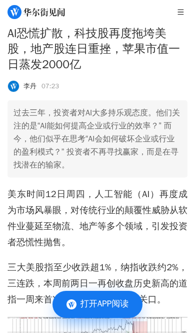 AI恐慌扩散,科技股再度拖垮美股,地产股连日重挫,苹果市值一日蒸发2000亿