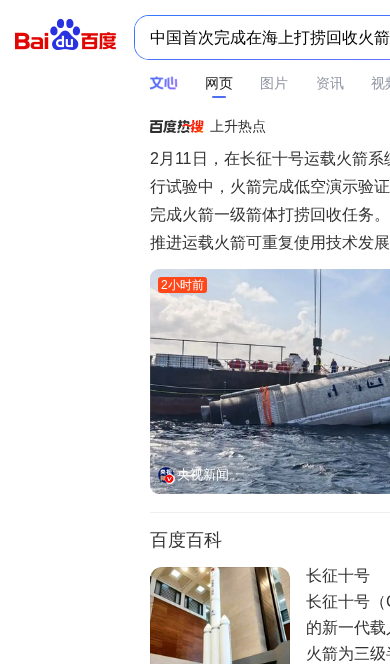 中国首次完成在海上打捞回收火箭