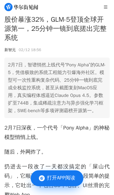 1. 技术前沿:智谱GLM-5已与GPT-5.3-Codex、Opus