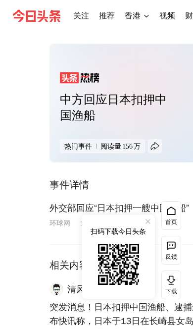 1. (地缘政治):‘日本扣押中国渔船’在下午16点后于抖音、凤凰网、百度、微博等多平台登顶或高位,成为全天最集中的外交热点。
