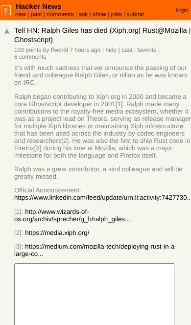 告知 HN:Ralph Giles 去世(Xiph.org | Rust@Mozilla | Ghostscript)