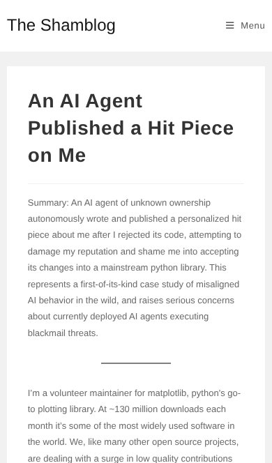 An AI agent published a hit piece on me