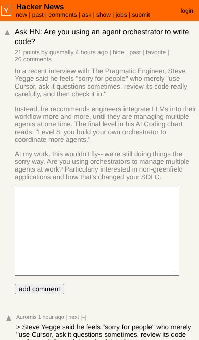 问 HN:你正在使用智能体编排器来写代码吗?